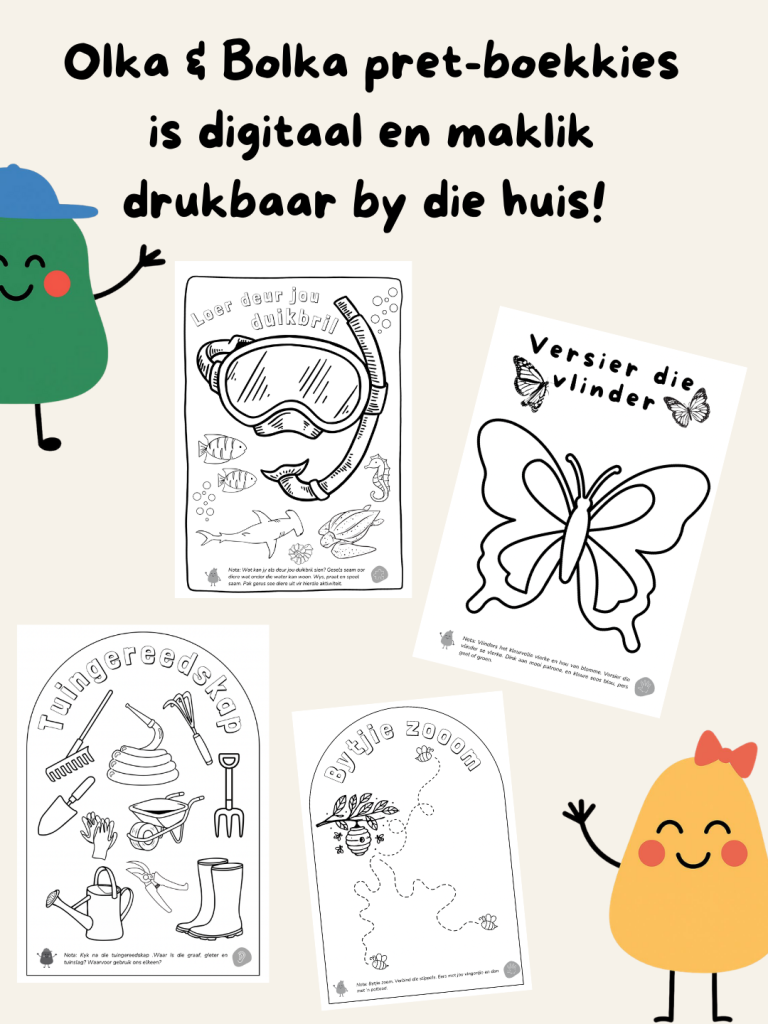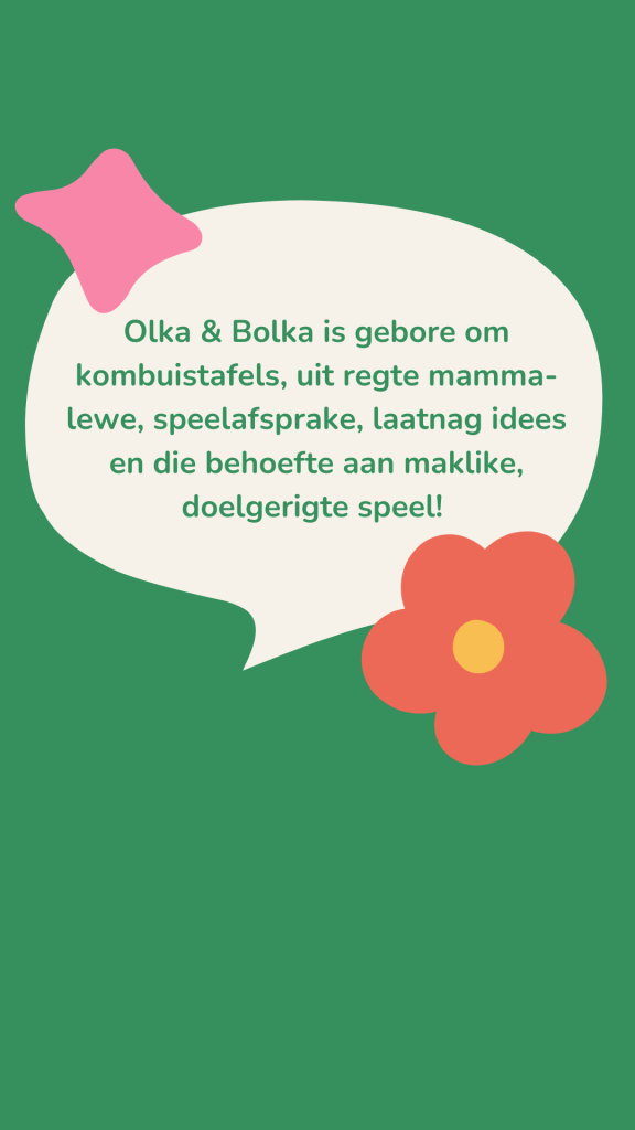 Vandag is Olka & Bolka Afrikaanse speelpret vir ouderdomme 1-4 jaar. Gebore uit regte mamma-lewe, speelafsprake, laatnag idees en die behoefte aan maklike, temagebaseerde aktiwiteite in Afrikaans!